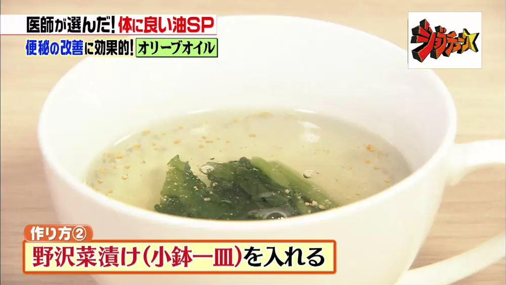 超簡単 便秘改善の魔法のスープ オリーブオイルでお腹スッキリ ジョブチューン Tbsテレビ
