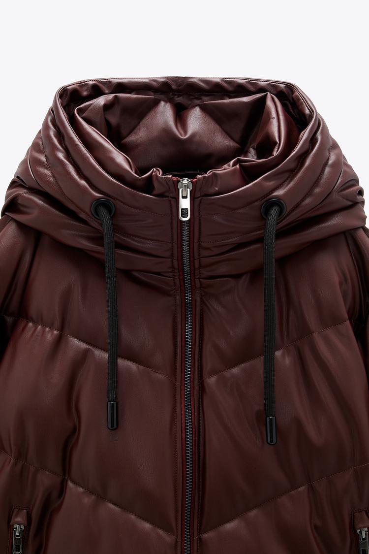 Faux Leather Puffer Jacket Zara United States