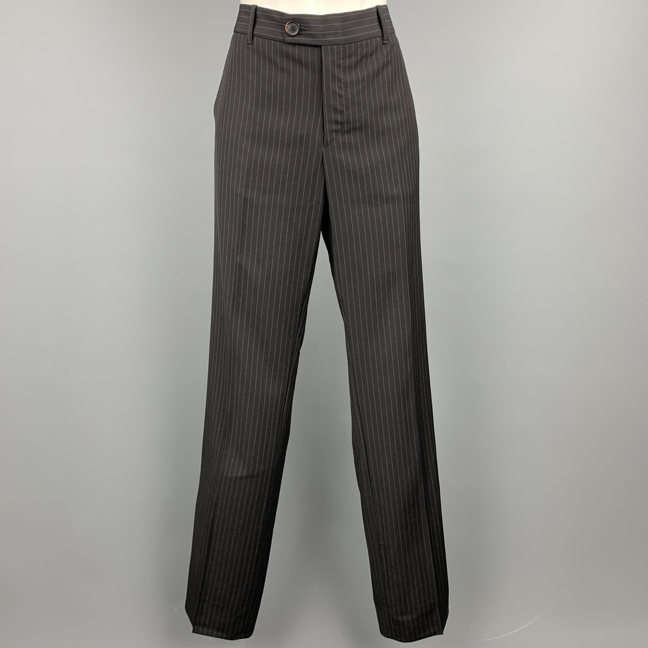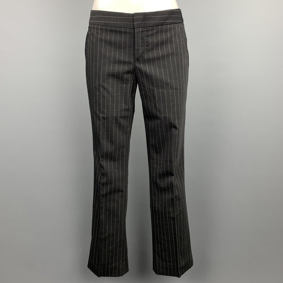 Gucci Size 4 Charcoal Wool Blend Pinstripe Straight Leg Dress Pants Leprix