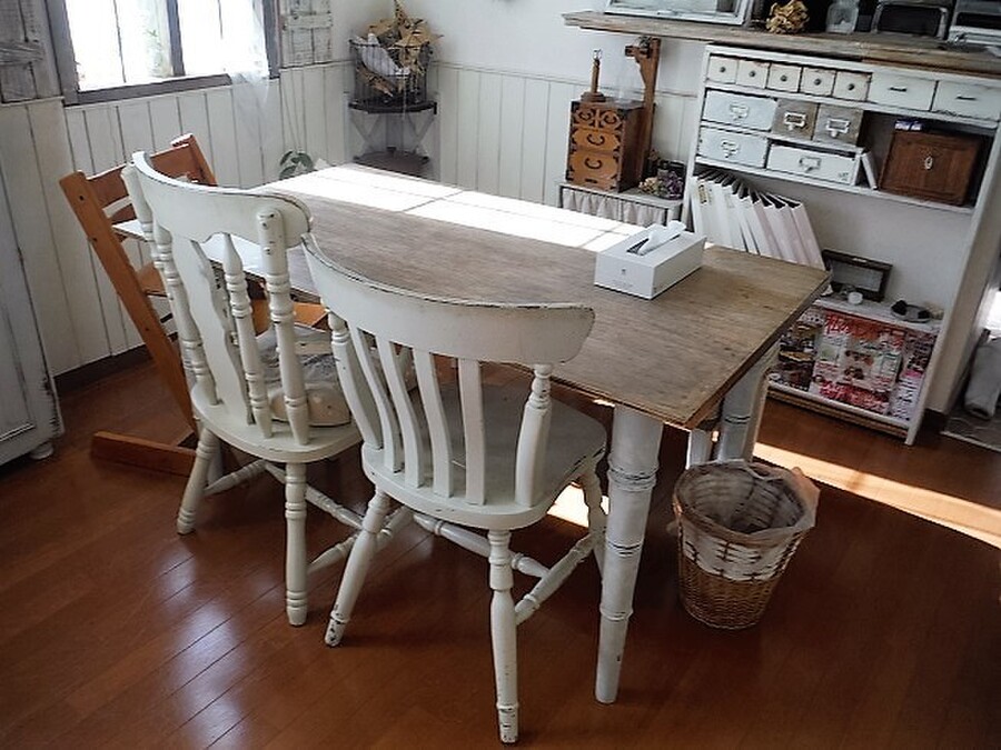 100均粘土とやすりと気合いで 笑 ダサいダイニングテーブルをアンティーク風に 暮らしニスタ